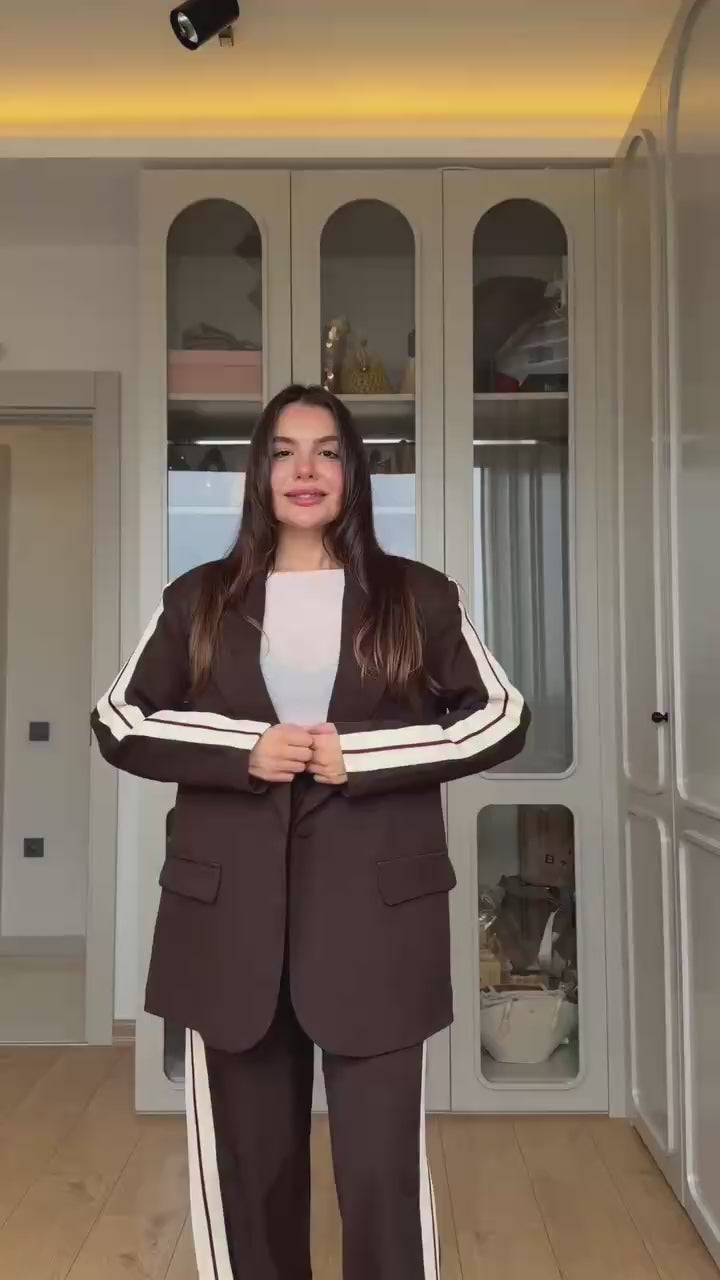 Completo giacca con design a righe a contrasto e pantalaccio con righe laterali a contrasto disponibile in 5 tonalità. Questo ensemble sofisticato combina eleganza contemporanea con dettagli sartoriali ricercati. La giacca presenta una struttura impeccabile con righe che creano un effetto visivo dinamico, mentre il pantalaccio ampio esalta la silhouette con le sue righe laterali coordinati. Perfetto per chi desidera un look poliedrico, il completo Milly si adatta sia a occasioni formali che a contesti più casual. Disponibile in cinque varianti cromatiche, permette di esprimere il proprio stile personale mantenendo un'atmosfera di raffinata eleganza.